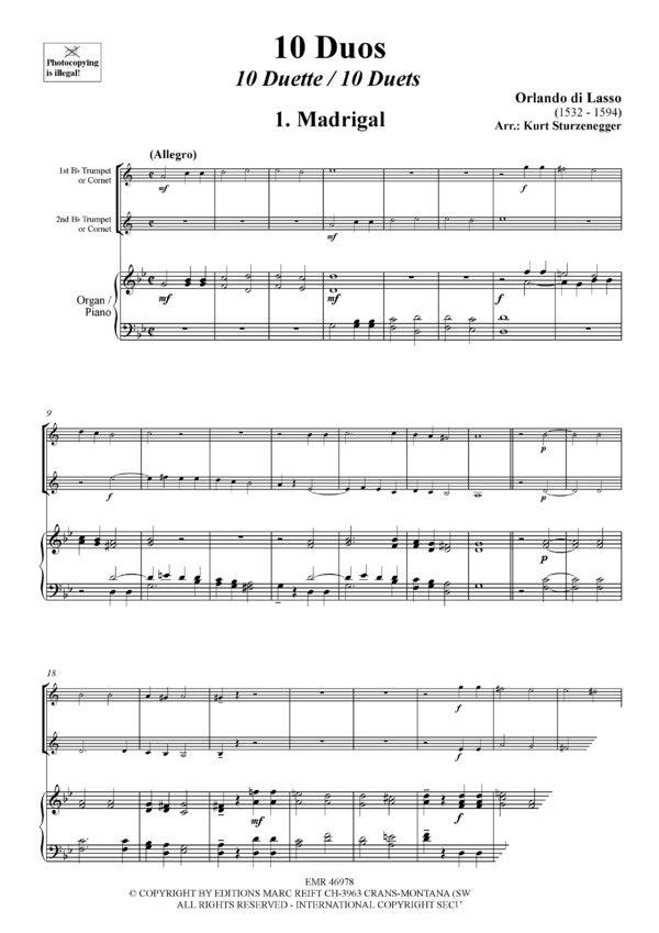 1. Madrigal / 2. Pavanna / 3. 3 Ayres / 4. Canzona / 5. Intrada et Aria / 6. Choral / 7. Sonata / 8. Overture / 9. Menuet et Bourrée / 10. Preludio 10 Duette / 10 Duets
