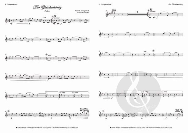 Partitur, 1. Trompete in B, 2. Trompete in B, 3. Trompete in B, Tenorhorn in B, Bariton in B, Bariton in C, Tuba in C, Schlagzeug