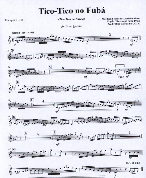 für 2 Trompeten in B, Horn in F, Posaune + Tuba