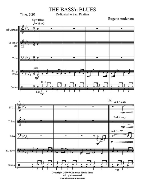 für Tuba, Klarinette, Tenorsaxophon, Kontrabass + Drum Set