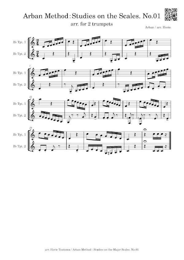 Horie Tsutomu hat in 10 Bänden die Übungen der bekannten Arban Schule für 2 Trompeten arrangiert, eine sehr gute Idee.