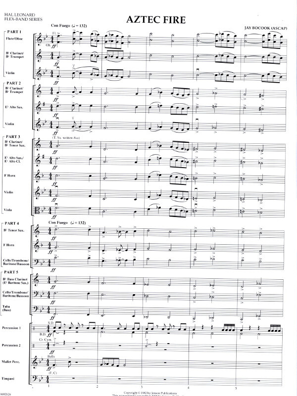 Here is a bold work with plenty of Latin excitement and drive. Contrast is provided in the melodic middle section, then the piece roars to a powerful conclusion.