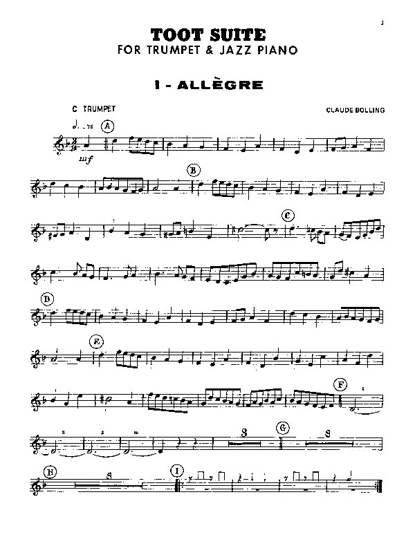 Toot Suite transcribed for the jazz piano of Claude Bolling as well as the solo trumpet of world-renowned player Maurice Andre. Includes bass and drum parts.
