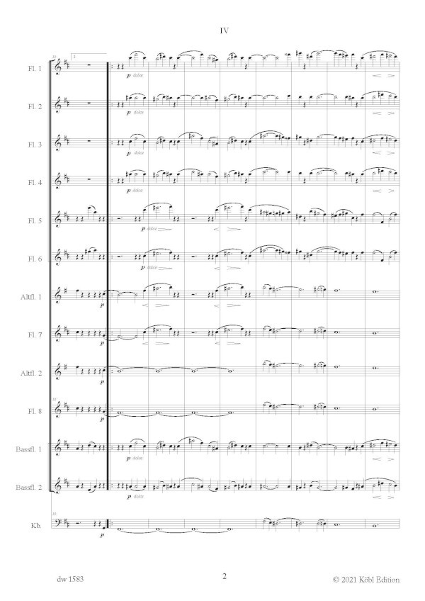 für 8 Flöten, 2 Altflöten, 2 Bassflöten & Kontrabass ad libitum
