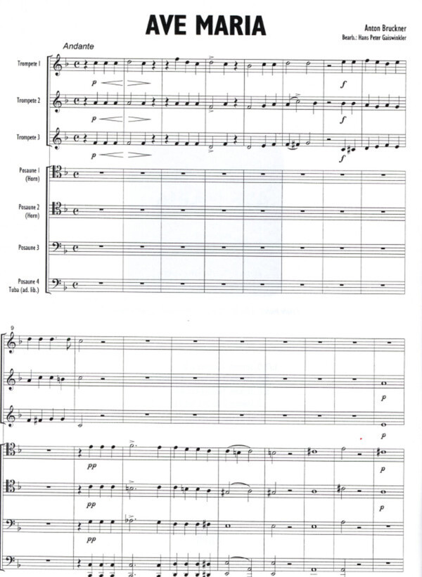 für 3 Trompeten in B, 2 Posaunen (Hörner), 2 Posaunen + Tuba ad lib.