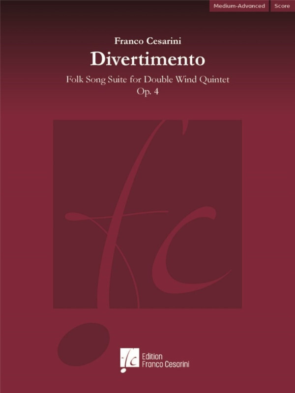 Der Titel spielt ganz klar auf die klassische musikalische Form für Blasinstrumente an. Die sogenannte Harmoniemusik war eine sehr beliebte Ensemble-Art der Wiener Schule. Insbesondere Mozarts Erbe ist ein Beweis für die unsterbliche Schönheit und den absolut künstlerischen Wert der Werke. In den drei Abschnitten des Divertimento Op. 4 verarbeitete der Komponist drei bekannte Lieder die ersten beiden aus Finnland und das letzte ist bulgarischen Ursprungs. Diese Komposition ist von Grund auf unkompliziert und zum Vergnügen der Zuhörer bestimmt. Aber trotzdem nicht frei von besinnlichen, tiefgründigen Momenten, speziell im zweiten Teil. Dieses jugendliche Werk schildert die Liebe des Komponisten zu beliebten Liedern und Volksliedern, die folglich auch einen Großteil des Werkes ausmachen. Die Essenz seiner charakteristischen Ausdrucksform liegt in seinem Talent für das Schreiben von Instrumentalmusik und in der akribischen Beachtung der Balance der Form.