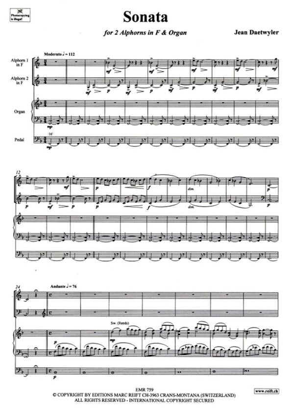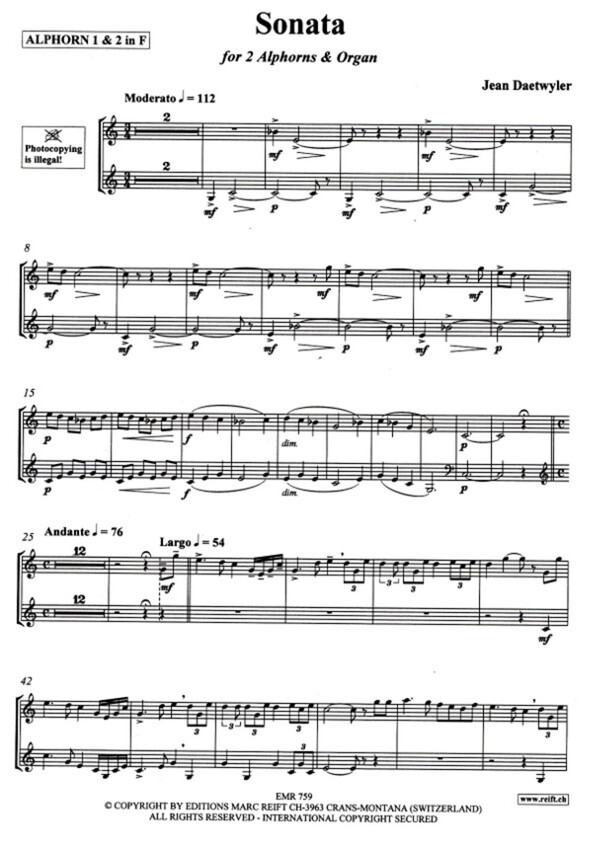 für 2 Alphörner in F + Orgel