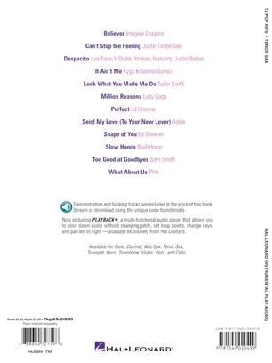 A dozen hot contemporary hits are included in this collection perfect for budding instrumentalists. It features online access to audio demonstration and backing tracks for download or streaming to help you hear how the song should sound then play along and sound like a pro! Songs include: Believer - Can't Stop the Feeling - Despacito - It Ain't Me - Look What You Made Me Do - Million Reasons - Perfect - Send My Love (To Your New Lover) - Shape of You - Slow Hands - Too Good at Goodbyes - What About Us.