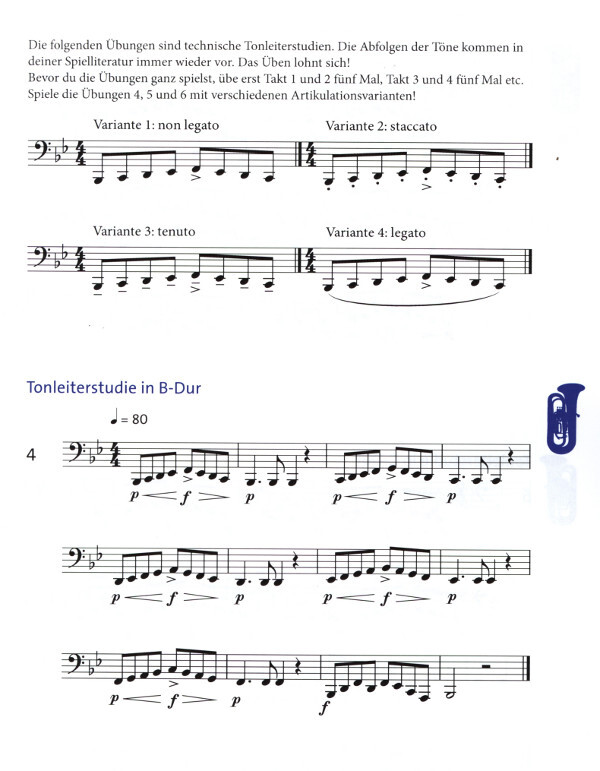 In vier Kapiteln erweitert der zweite Band der Instrumentalschule Fähigkeiten und Fertigkeiten des Tubapiels. Mit der Erarbeitung neuer Tonräume in C-, F-, Es-, As-Dur können neue Stücke und Etüden bewältigt werden, teilweise im Duett oder sogar im Trio. Die Schule besticht durch durchweg praxisorientiertes Arbeiten mit dem Instrument. Neben speziellen Übe- und Gestaltungsmöglichkeiten für Tonleitern wird auch der Dynamik, der Phrasierung, der Atmung und dem Rhythmusgefühl ein großer Raum beigemessen. Musiktheoretische Parameter werden in gewohnter Weise zu Beginn jedes Kapitels behandelt. Spielerisch eingebundene Denkaufgaben fordern den Schüler auf, die Stücke nicht nur abzuspielen, sondern sich bewusst mit ihrem Aufbau und dem Notentext auseinanderzusetzen. Am Ende vieler Kapitel kann der Schüler im Quiz seinen jeweiligen Lernstand überprüfen. Mithilfe der beigelegten CD können Übungstücke und Lieder noch einmal angehört oder im Zusammenspiel geübt werden.