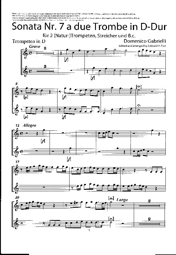 für 2 (Natur-) Trompeten in D, B oder A, Streicher und B.c.