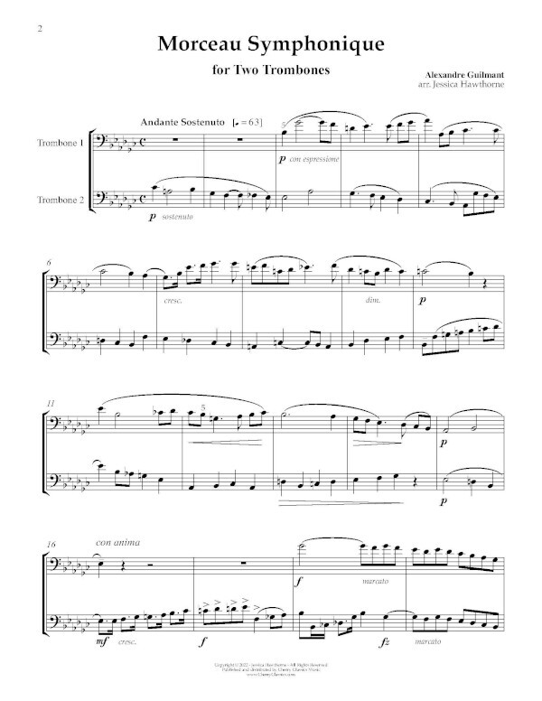 Jesicca Hawthorne has beautifully arranged this classic of the Trombone repertoire for two Trombones and it really works well! Two scores are provided for ease of reading.