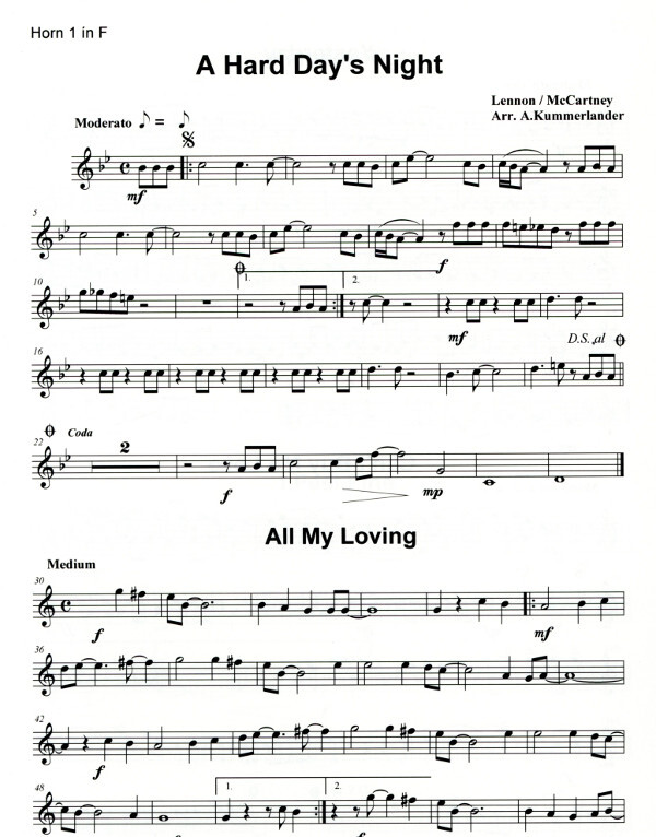 gut spielbar - 1. Horn nur bis g" A Hard Day's Night All MY Loving Yesterday Can't Buy Me Love Eleanor Rigby I Feel Fine She Loves You