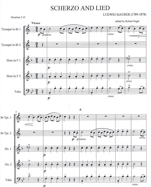 für 2 Trompeten, Horn, Horn (Posaune) + Posaune (Tuba)
