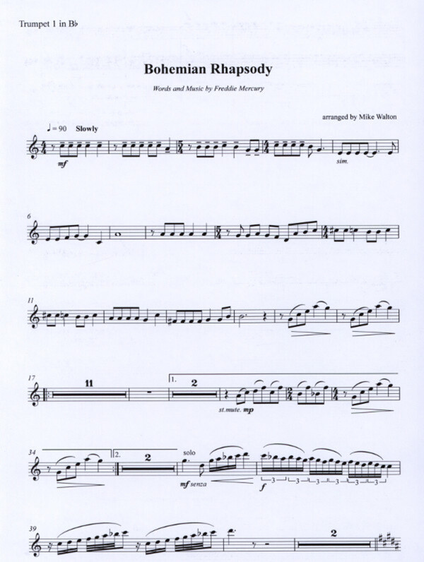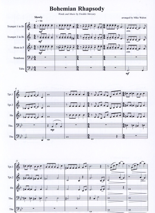 Hit der Rockgruppe "Queen" für 2 Trompeten in B Horn in F/Es Posaune in C im Baßschlüssel oder in B im Violinschlüssel + Tuba (Es-Bass)
