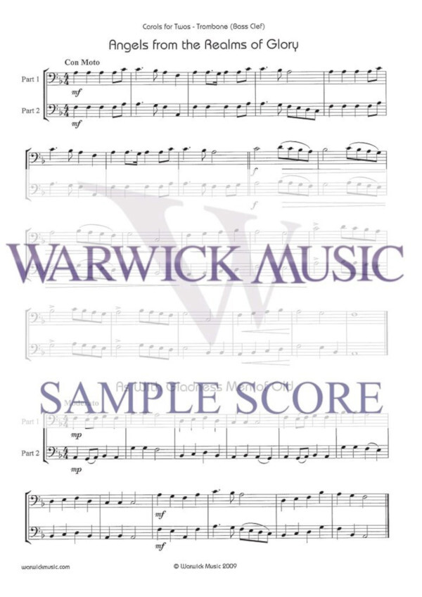 This volume contains 30 of the best known Christmas carol tunes arranged straightforwardly for two trombones reading from the bass clef: the tune is always in the first part, the second part is only slightly more difficult that the first. They are compiled in alphabetical order so you can find your favourite quickly. Ideal for those December lessons or short performances at the school Christmas concert!
