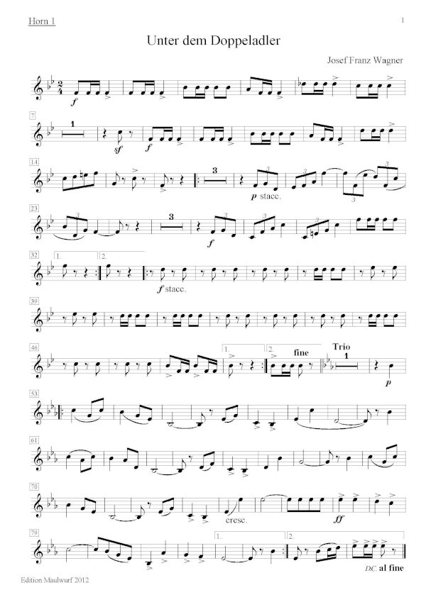 01 Josef Franz Wagner (1856-1908): "Unter dem Doppeladler" 02 G.F. Händel (1685-1759): Marsch aus der Oper "Rinaldo" 03 Gottfried Sonntag (1846-1921): "Nibelungen-Marsch"