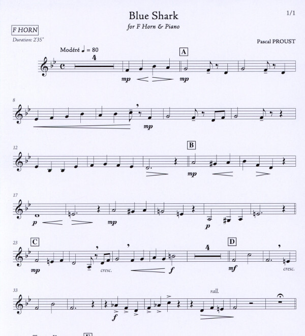 " Un gentil requin bleu en eaux calmes, pour le bonheur des jeunes instrumentistes du 1er cycle, pour leur examen ou pour une audition ... " - Pascal PROUST