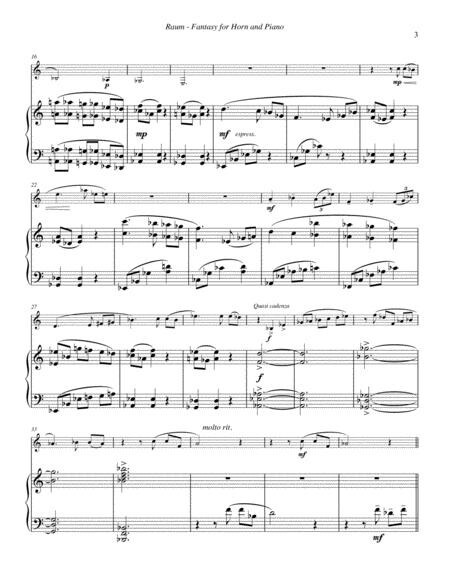 Fantasy for Horn and Piano was adapted from the trombone version upon request by principal hornist of the Calgary Philharmonic, Kurt Kellan. It is dramatic, lyrical and very expressive, making it an ideal recital choice.