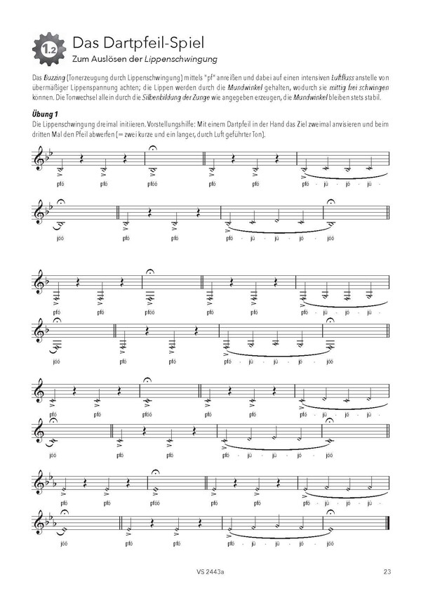 Der Autor - Solo- und Orchestertrompeter, Dozent für Trompete und Ensembleleitung, Kammermusik und Registerproben hat mit diesem Lehrwerk den wenigbestückten Markt der Trompetenschulen für fortgeschrittene Bläser entscheidend bereichert: Seine darin aufgezeigten Übungen sind die Ergebnisse seines eigenen Instrumentenspiels und -trainings, andererseits aber auch der intensiven Arbeit mit Schülern in vielen Kursen und Lehrveranstaltungen, und haben zum Ziel, die zentralen Aspekte des Trompetenspiels in praktikable Übungen zu packen. Deren Niveau schließt dabei die Lücke zwischen den zahlreichen Anfängerschulen und der anspruchsvollen Literatur aus dem professionellen Bereich: Inhaltlich gibt es jeweils nur kurze Erläuterungen zu den jeweiligen Übungen, der Fortschritt wird wenigerdurch die Theorie, als vielmehr über das Spiel selbst also im Training erzielt.