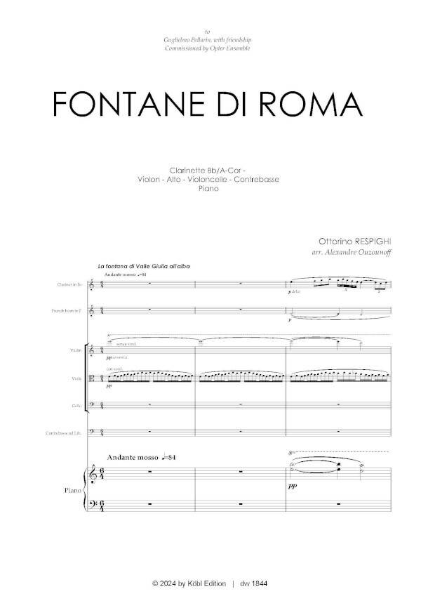 für Clarinet, Horn, Violin, Viola, Cello, Double Bass (ad lib.), Piano