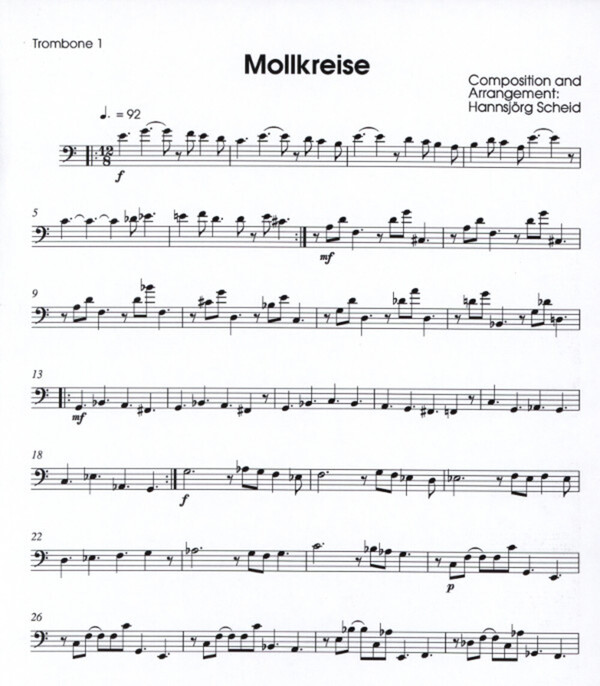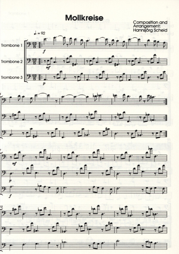(Baßschl., Komposition bei d er sich die Melodie und deren harmonische Struktur in allen drei Stimmen wid erspiegelt)