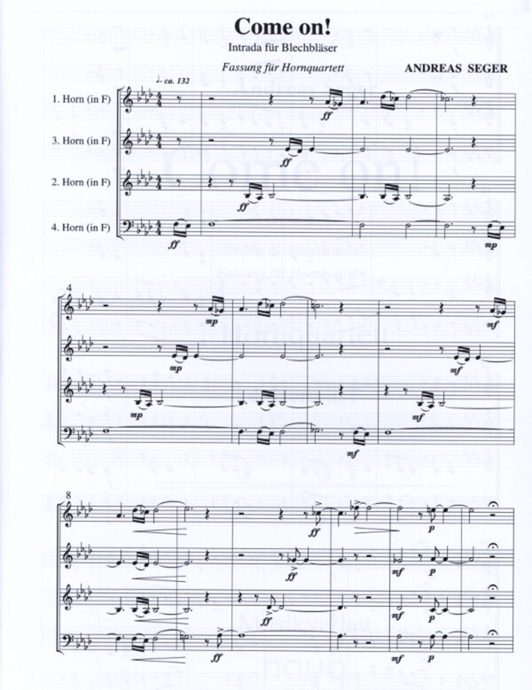 (Intrada für Blechbläser, 2003, modernes Stück, als Eröffnung eines Konzertes oder Festaktes, alle 4 Stimme n sind im Violinschlüssel, 4 Spielpartituren)