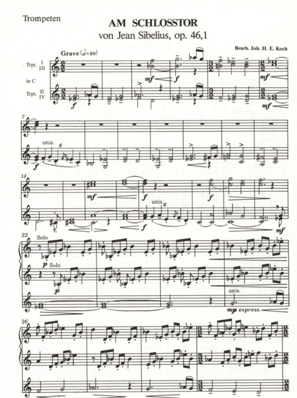 für 4 Trompeten in C, 4 Posaunen, Tuba (Posaune) + Pauken ad lib.