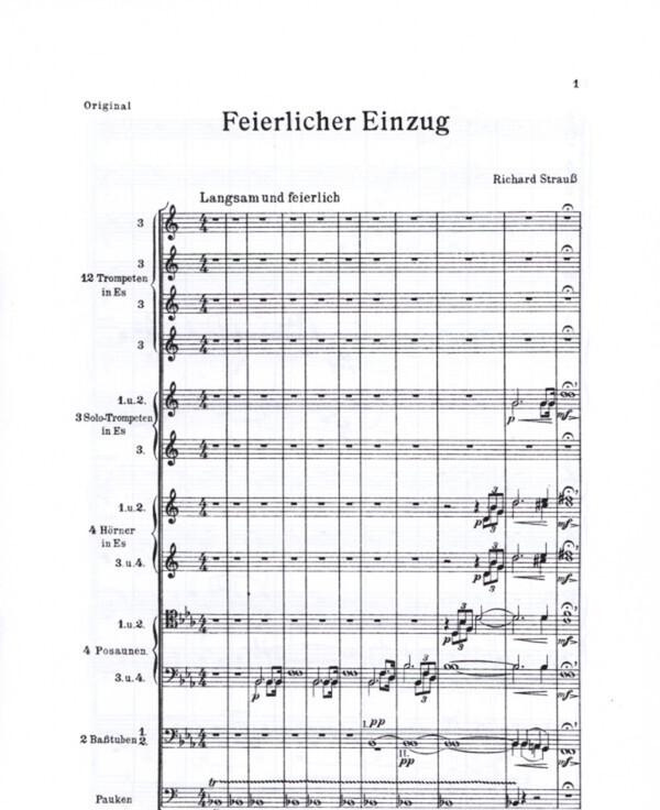 für 15 Trompeten in Es, 4 Hörner, 4 Posaunen, 2 Tuben + Pauken