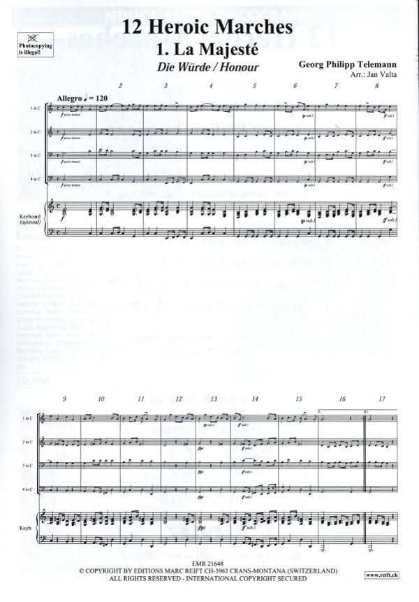 3. Stimme für Posaune/Bariton in B und C (Baßschlüssel), Horn in F und Es 4. Stimme in Es, B und C (Baßschlüssel)