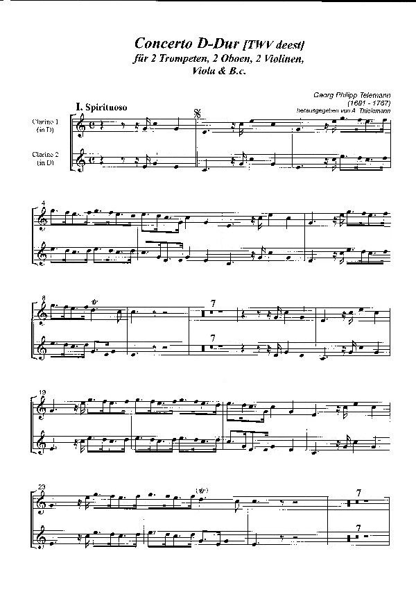 2 Trompeten in D, 2 Oboen, 2 Violinen, Viola & B.c.