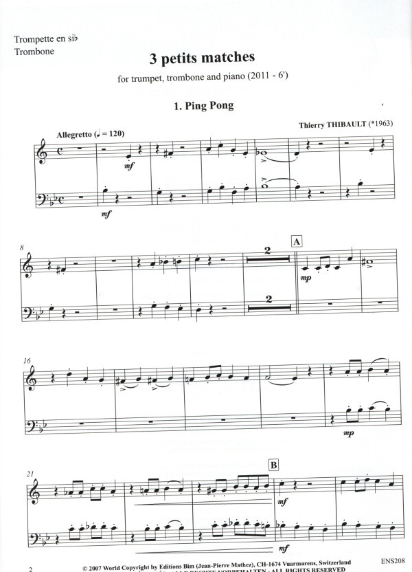 für Trompete in B, Posaune und Klavier