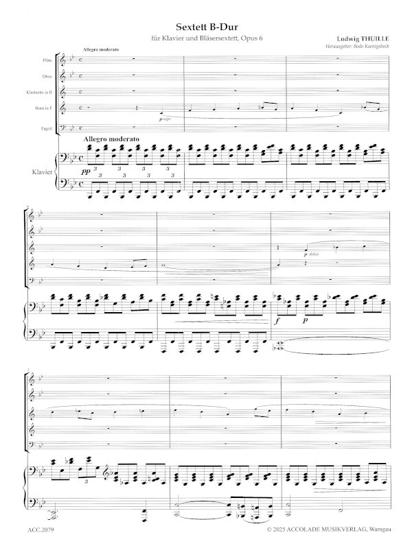 Für das Sextett op. 6 gibt es nur zwei Vorläufer, von denen allerdings fraglich sein dürfte, ob Thuille sie gekannt hat: das Sextett von Louise Farrenc (1804-1875) aus dem Jahr 1852 und das 1875 veröffentlichte Sextett von Léon Kreutzer (1817-1868). Kammermusik für Bläser fristete in der Frühromantik ein Schattendasein und wurde erst wieder in der zweiten Hälfte des 19. Jahrhunderts von namhaften Komponisten entdeckt (Franz Lachner, Theodore Gouvy, Carl Reinecke, Joachim Raff, Richard Strauss u.a.). Strauss riet seinem Freund trotz des Erfolgs seiner eigenen Werke für Bläserensemble (Opus 4 und Opus 7) davon ab, ein Sextett für Klavier und Bläser zu komponieren. Thuille ließ sich aber nicht von seinem Plan abbringen und schreibt am 5. Januar 1886 in einem Brief an Strauss: Ich habe mich nun doch an die Komposition des ehemals projektierten Sextetts gemacht, und will es zum Trotz. Nach Thuille haben über 200 Komponisten für diese Besetzung komponiert, aber nur wenige haben die Klangpracht und Harmoniefülle dieses Sextetts erreicht.