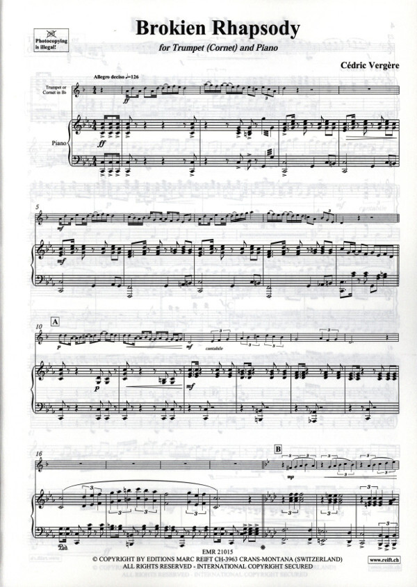 für Trompete (Kornett) in B und Klavier