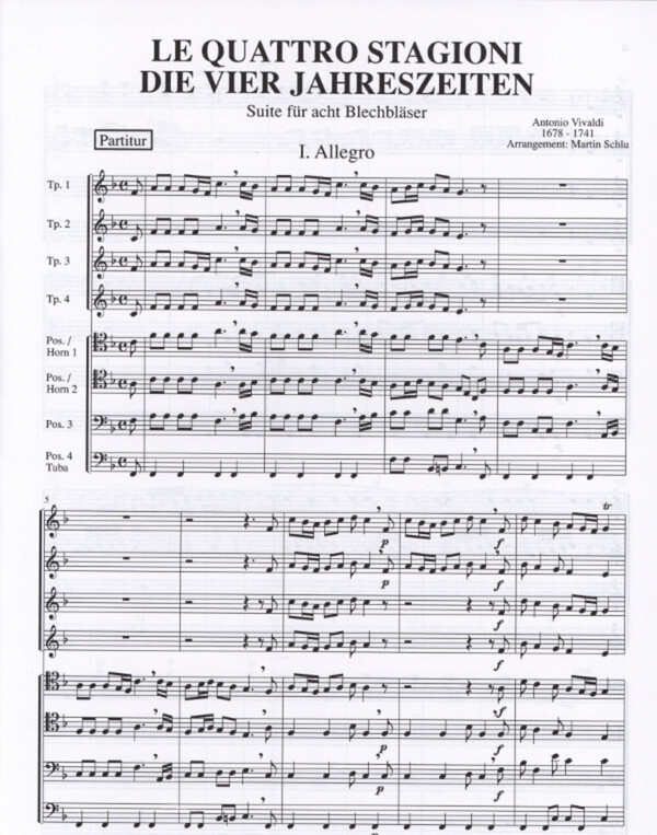für 4 Trompeten, 2 Posaunen (2 Hörner), Posaune + Posaune (Tuba)