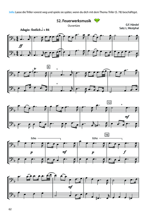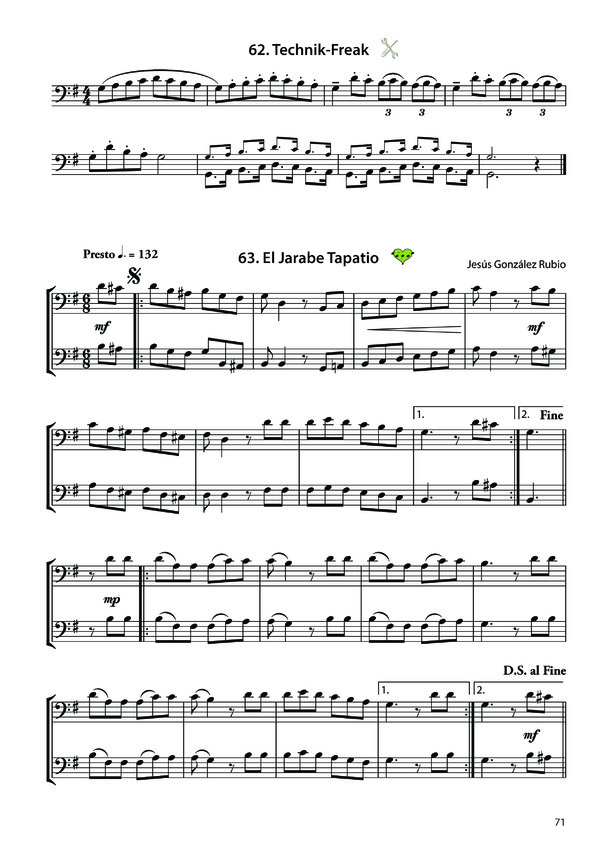 Zahlreiche Stücke, Duette, Rhythmusübungen und Tonleiterstücke mit praxisnahen Spielanweisungen