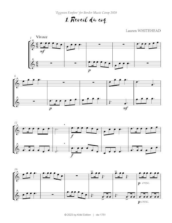 zu den Acht Fantasiestücken für zwei Parforcehörner inspirieren lassen, wobei sie in den Stücken Lumière sur les feuilles mortes und Mieux à deux auch Themen aus Kompositionen von Claude Debussy und Ludwig van