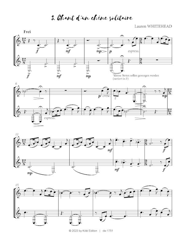 multiphonalen Spiels zur Anwendung und lässt reizvolle vierstimmige Akkordklänge entstehen. Die Fantasiestücke eignen sich daher auch als didaktische Erweiterung des Naturhornunterrichts, sollen aber vor allem die Freude am freien Musizieren in der Natur anregen!