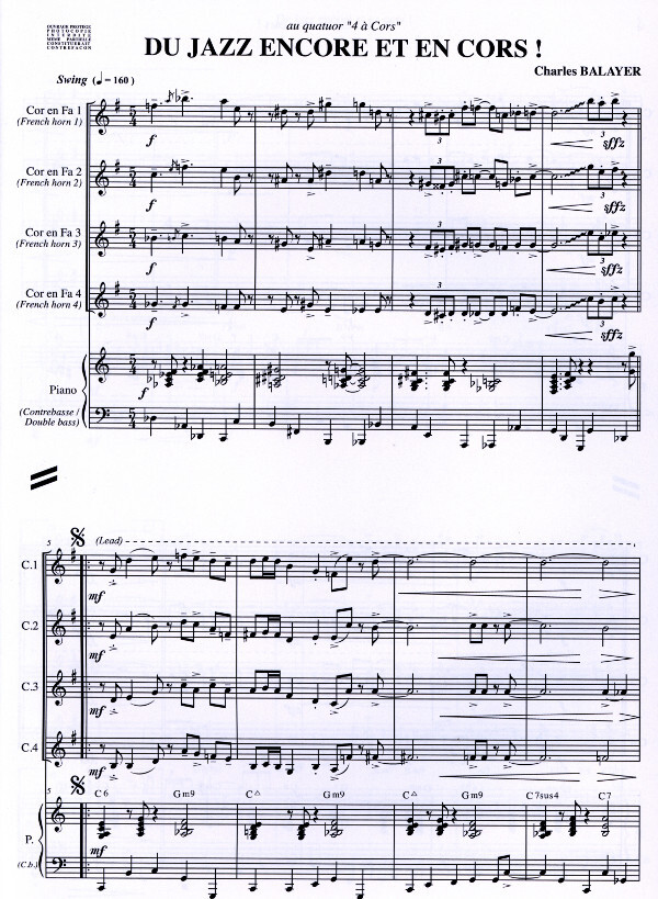 für 4 Hörner in F und Klavier oder Rhytmusgruppe