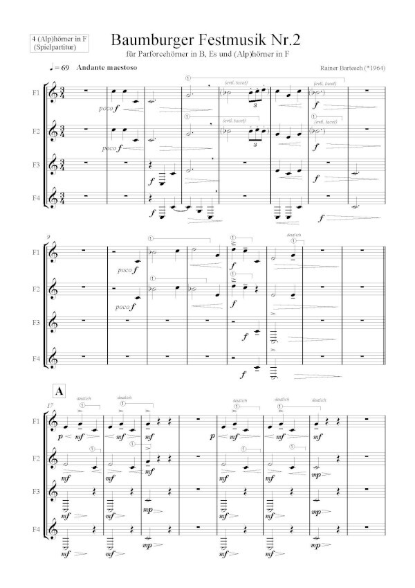 für 3 Naturhörner in B, 4 Naturhörner (Parforcehörner, Alphörner, in Es) + 4 Naturhörner (Alphörner, in F)