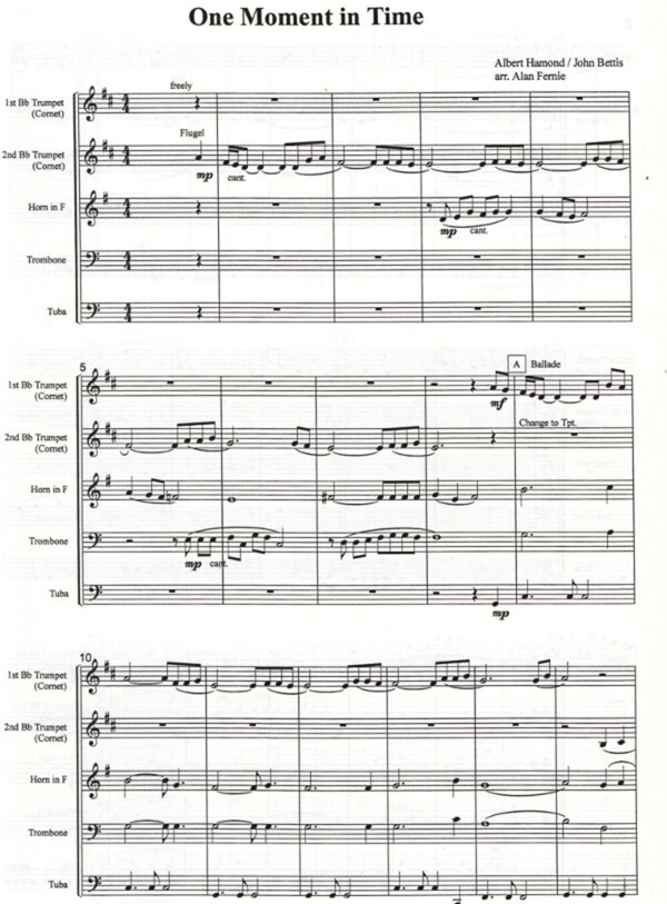 für 2 Trompeten, Horn in F/Es, Posaune (Tenorhorn) + Tuba