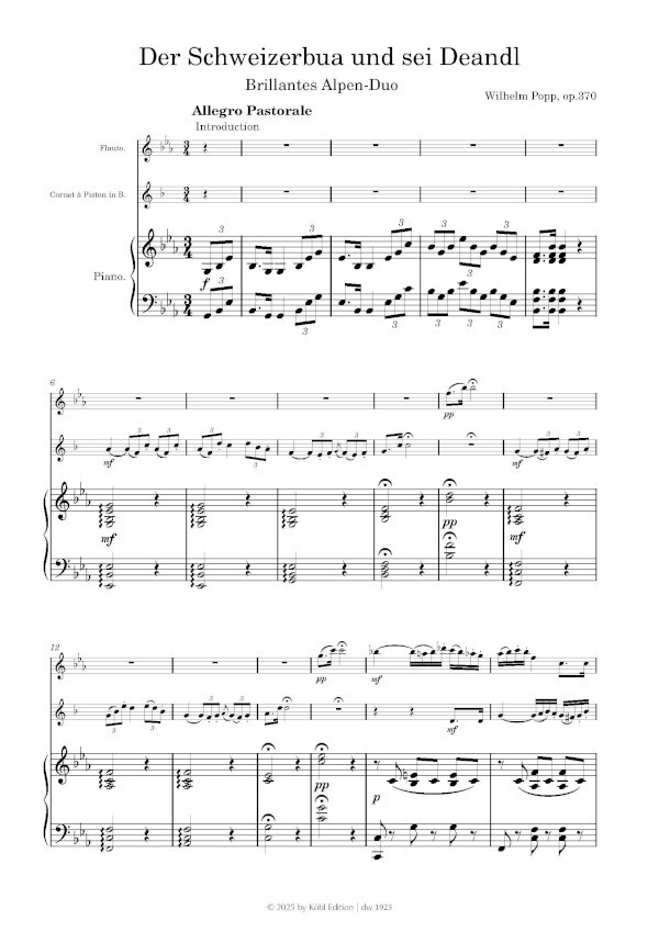 Flauto, Cornet à Piston (Trompete) n B und Klavier