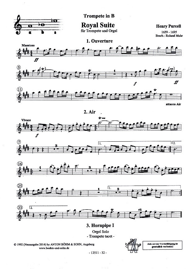 Verlag: Musikverlag Böhm und SohnStil: Barock / RenaissanceAusgabe: NotenArt-Nr.: R1218 / GN401314 Level: (5)