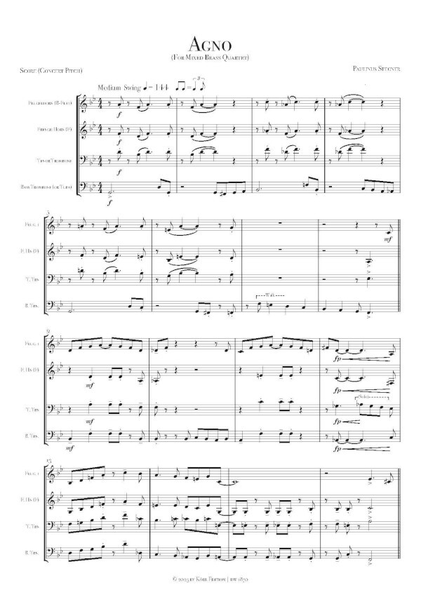Flügelhorn (oder Trompete) in B, Horn in F (oder 2. Flügelhorn in B), Posaune und Bassposaune (oder Tuba)