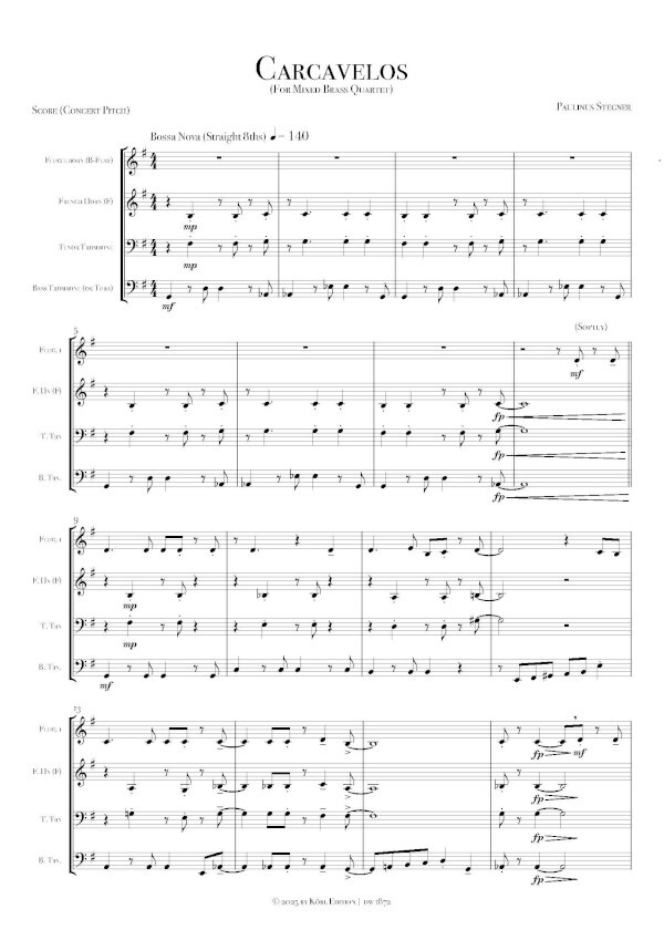 Flügelhorn (oder Trompete) in B, Horn in F (oder 2. Flügelhorn in B), Posaune und Bassposaune (oder Tuba)